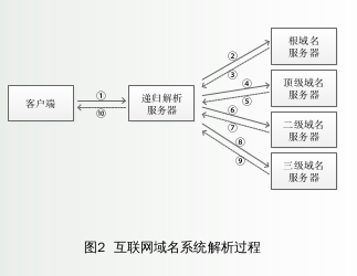 互聯網域名系統中,由廣泛部署于互聯網中的遞歸解析服務器為客戶端提供查詢服務,遞歸解析服務器從根域名開始,逐級查詢,直至查詢到目標域名。